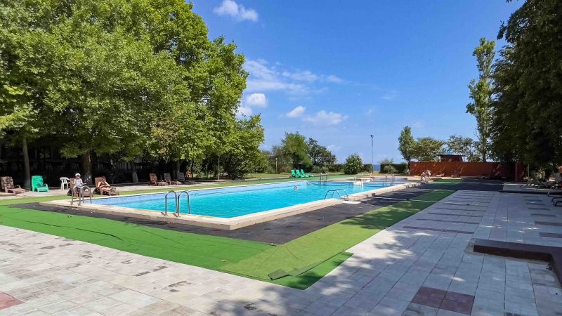 Зеленая территория с садом и уютными коттеджами с видом на море создают идеальные условия для отдыха. На территории отеля функционирует большой раздельный бассейн для взрослых и детей. Бассейн для взрослых имеет глубину 2 метра, длину 20, ширину – 9, прекрасные зоны отдыха на лежаках: солнечную- для загара у бассейна и тенистую- в тени деревьев. В детском бассейне купаются только дети, он имеет плавную глубину от 1 до 1,5 метров, квадратную форму 9 х 9. Детский бассейн расположен поблизости от взрослого, гости могут без волнения отдыхать рядом во взрослом бассейне.